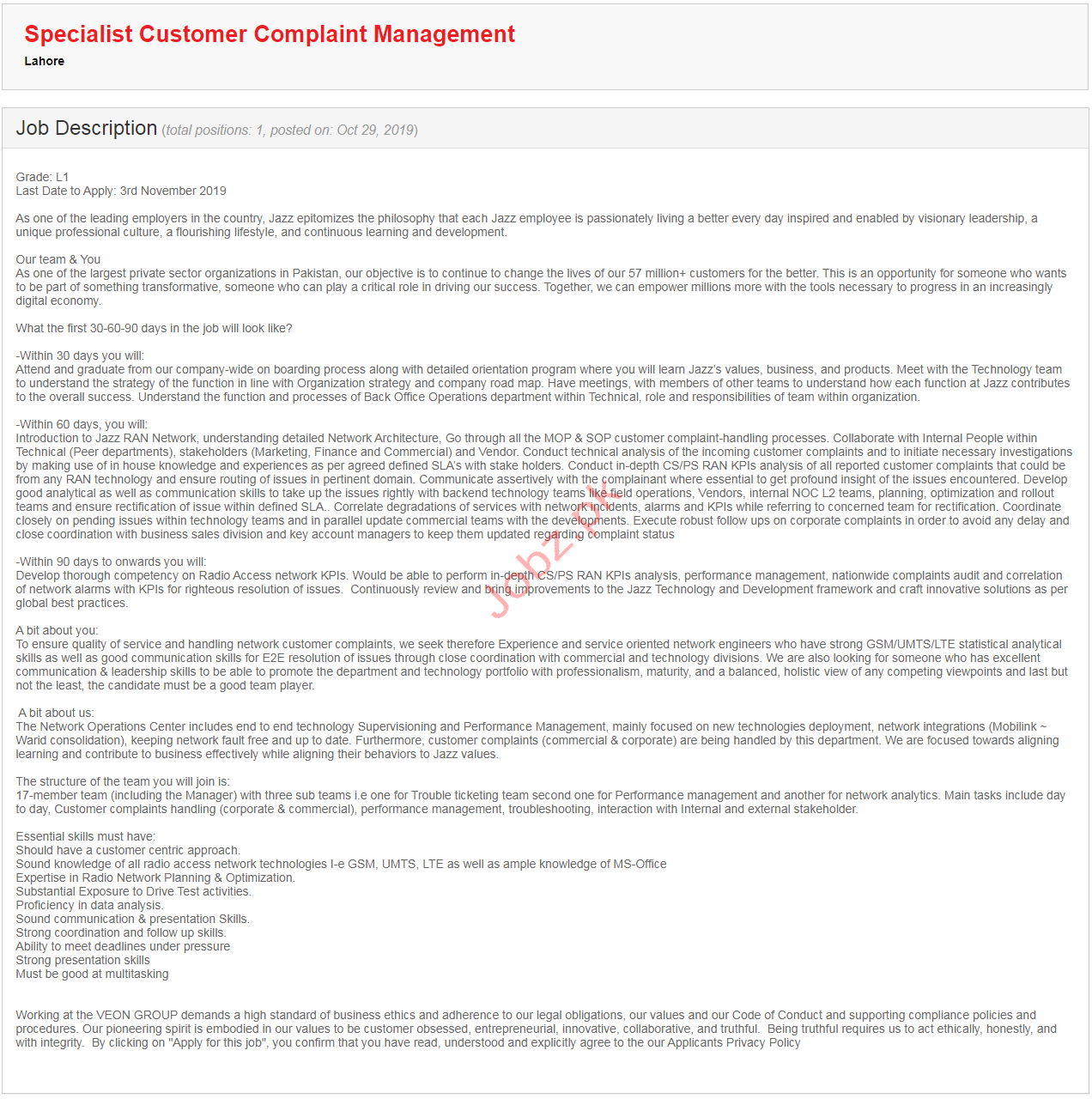 Customer Complaint Management Specialist Jobs In Lahore 2022 Job Advertisement Pakistan